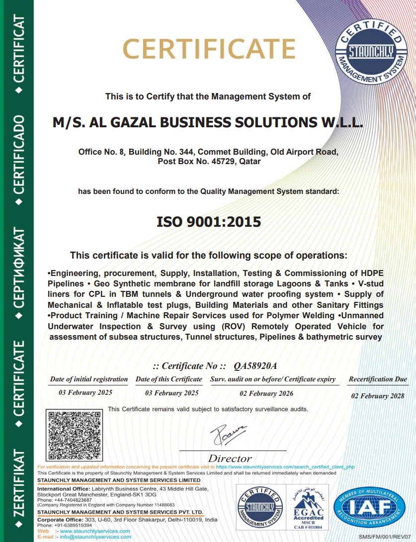 Our products are endorsed from Major Government Authorities of Qatar such as Ashgal (Public Works Authority – Qatar), Kahramaa (Qatar General Electricity and Water Cooperation) and adhere to international standards.